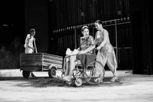 After Daniel Day Škufca had taken over his first stage direction at the Maribor Drama in the previous season, the premiere was interrupted by the coronavirus pandemic. About his decision, why he chose this particular book as an inspiration, he said: “My creativity is often influenced, even disturbed by wounds. Especially those I can feel myself. After the first hundred pages of the book, it was clear to me that I have found myself in a festering wound that I wanted to get into through the process. Yet, at the same time, it was quite obvious that tackling this particular wound was beyond my capacity and that it would be necessary to draw strength from everyone who would jump into it with me. ”